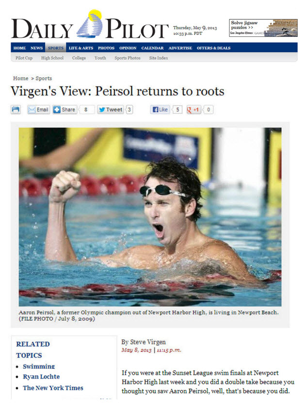 Aaron Peirsol Endorses Newport Beach Swimming