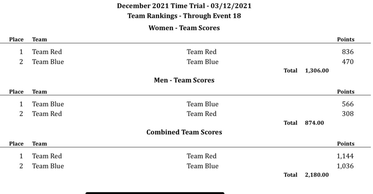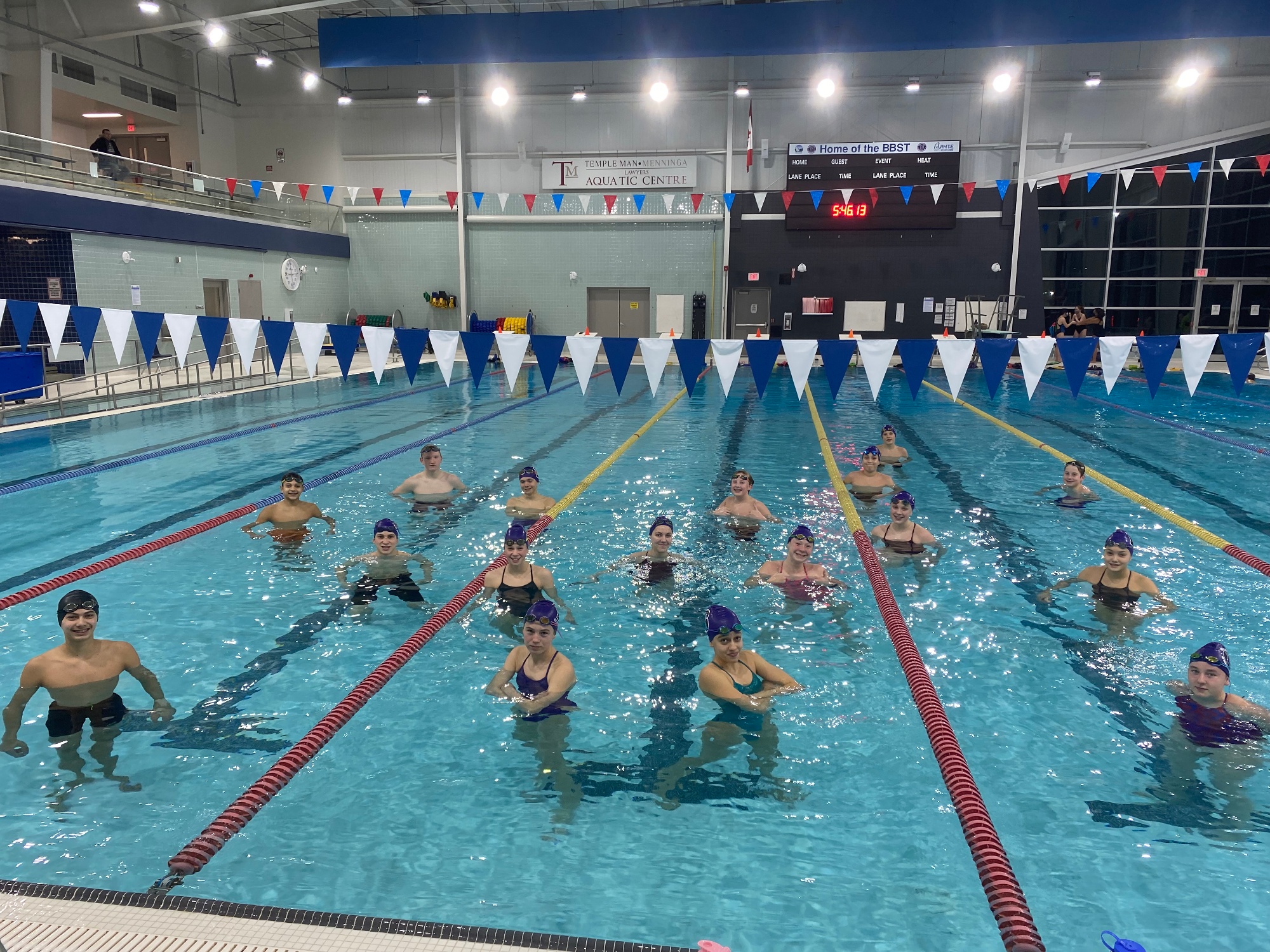 After getting beat by 23 points at the last Time Trial, this time Team Red (1144 points) outscored Team Blue (1036 points) by 108 points. Congratulations to new Ontario Youth Junior Championship qualifiers, Caelen Calder, in the 100m breatstroke at 1:16.86 and Lizzie Burnett, in the 200m breasttroke at 3:00.71, plus new Ontario Festival Championship qualifier, Judah Bell, in the 100m butterfly at 1:33.50, 100m backstroke at 1:27.90 and 100m IM at 1:30.17. Special mention goes out to new Regional qualifiers, Taneesha Asher, Ella Bolton, Leah Hudacin, Hallie Lupton, Caden Mecky and Morgan Slater.