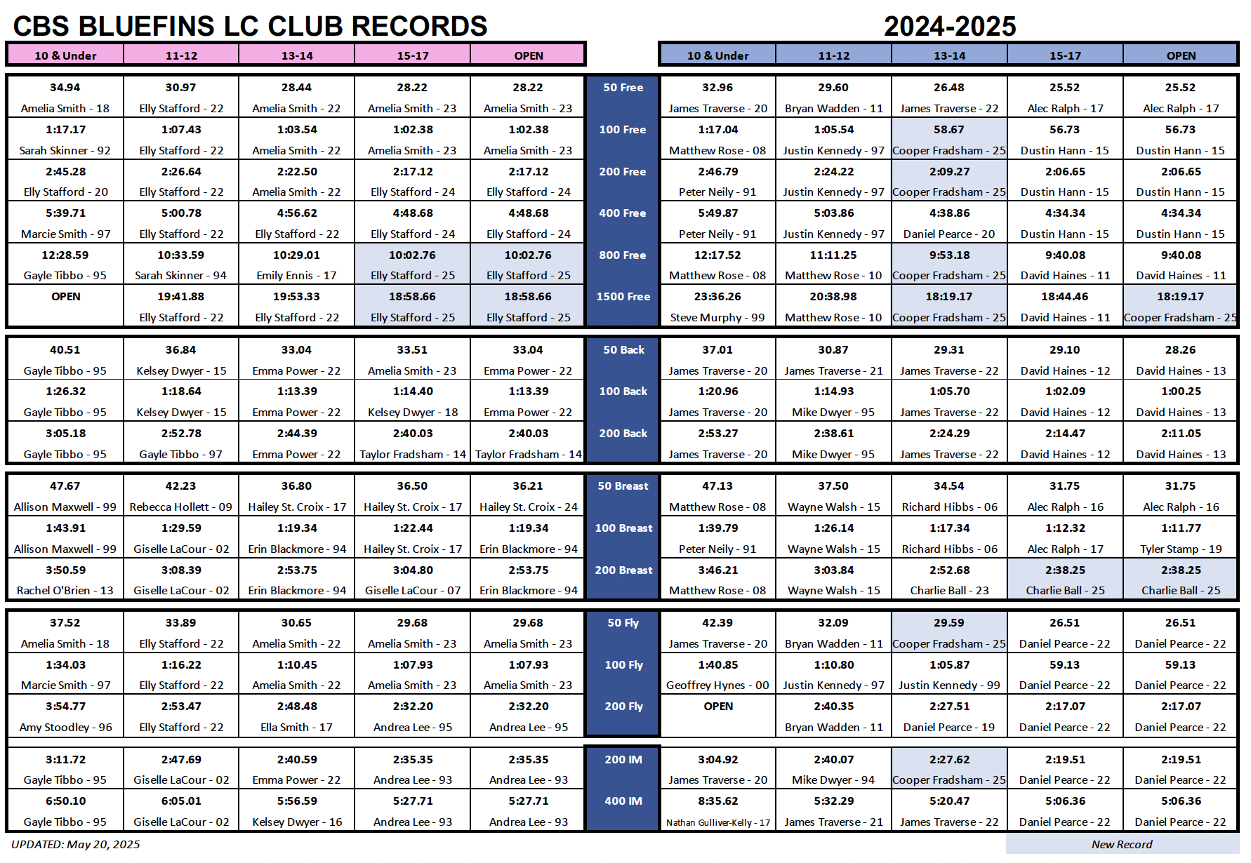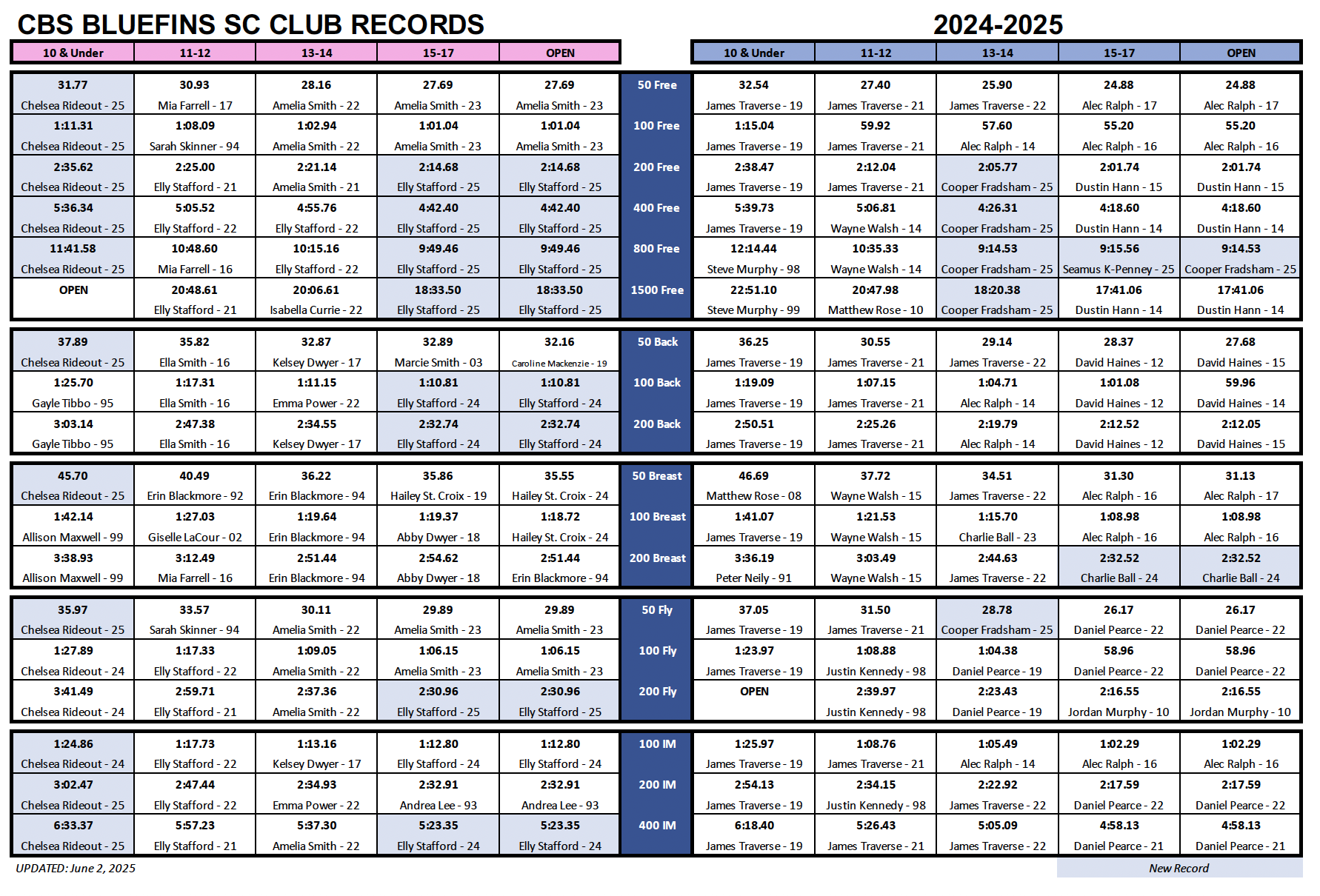 BLUEFINS CLUB RECORDS