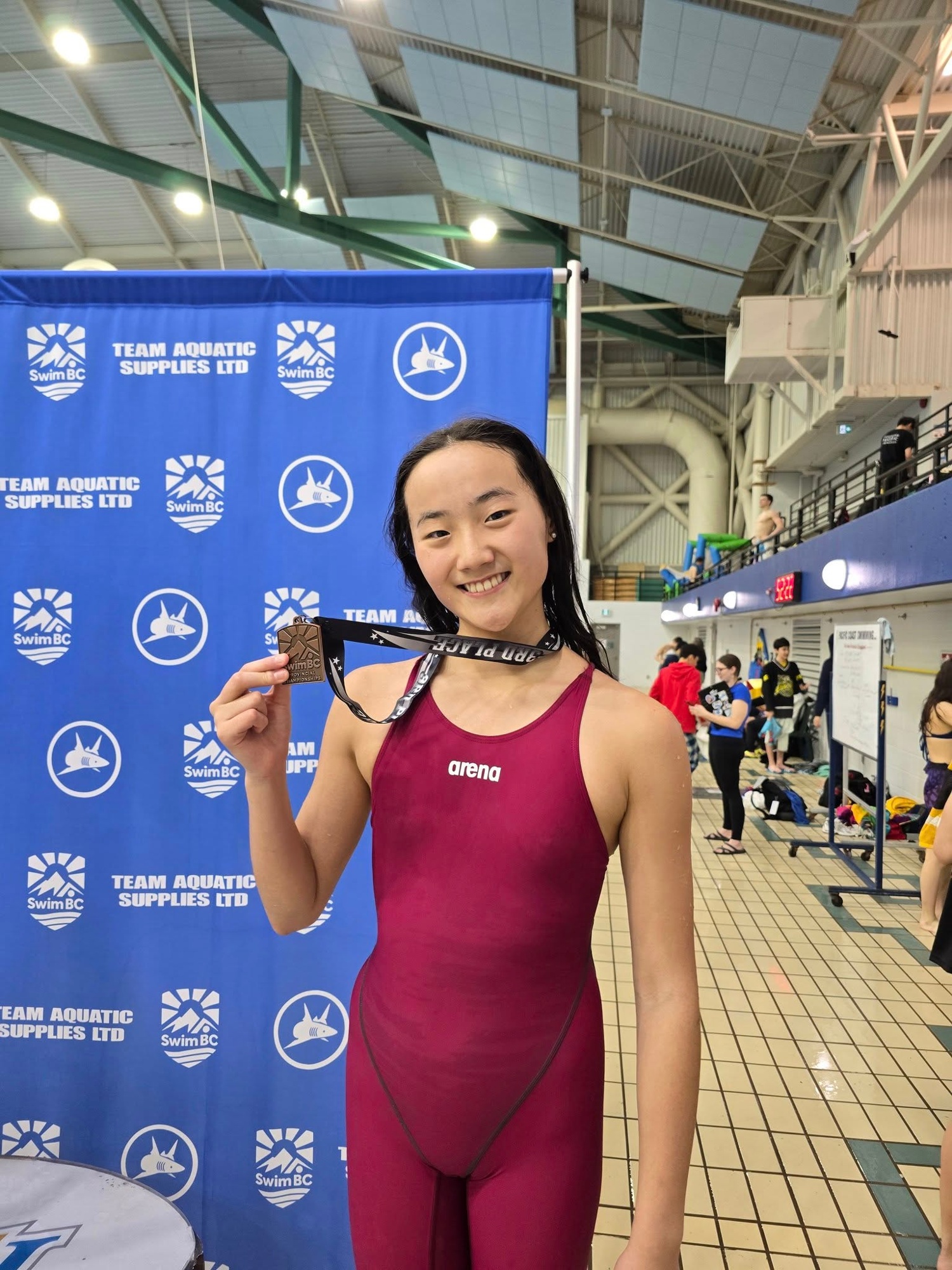 - Emma L (12 yrs) – first time in Provincials, 2 finals (50 BK and 100 BK), breaking club record in the 50 BK from 2022 and winning a bronze Medal!