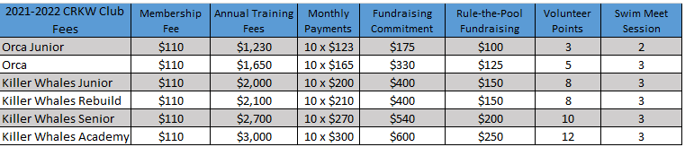 CRKW Swim Club Training Fees
