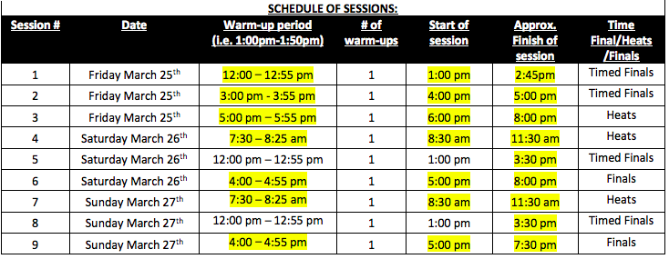 Good luck to all CW swimmers travelling to Windsor this weekend to compete in the WAC Spring Invitational. Please see the latest Meet Package (and below) for updated warm-up and start times and read this important facility access info sheet. Heat sheets are provided below (these may be subject to last minute changes):