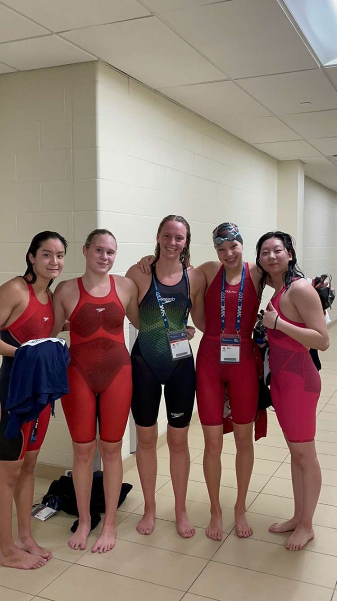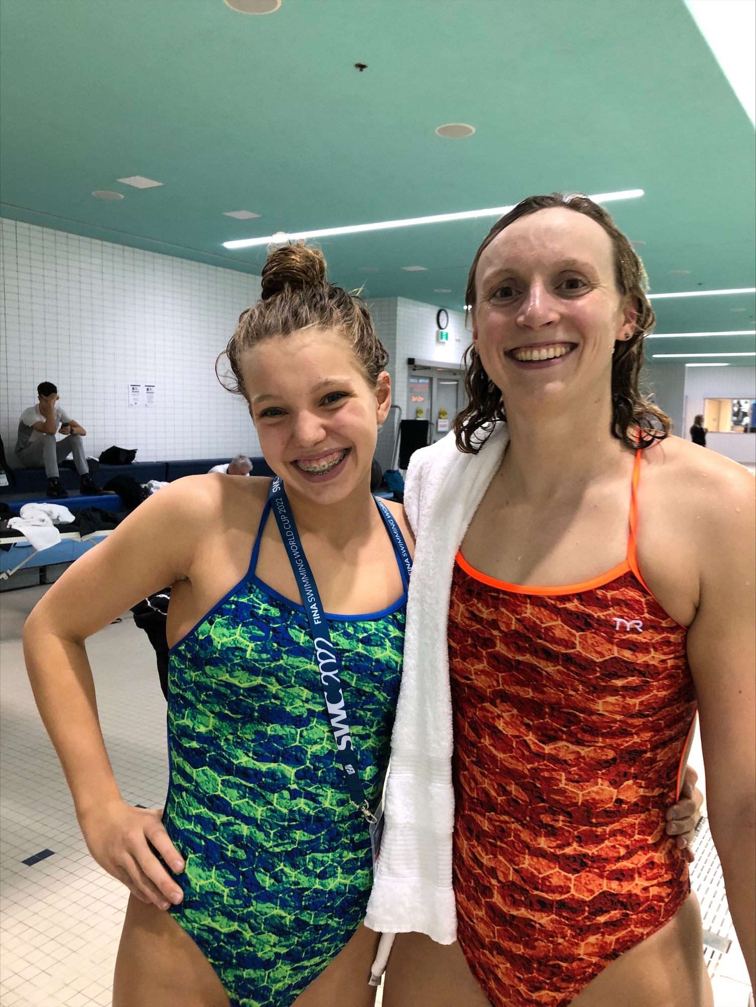 The FINA World Cup experience allowed Jessica not only the opportunity to compete at a high-level international event, but also to meet some of the best athletes in the sport who were incredibly gracious in and out of the pool. Jessica was thrilled when she was at the warm-down pool and Katie Ledecky recognized her as one of the girls who swam in her heat and that they were wearing matching suits! Jessica also met Canadian Olympic sensation, Maggie Mac Neil and had a group photo taken with her fellow 1500Free heat swimmers. Thanks for sharing these amazing photos, Jessi.