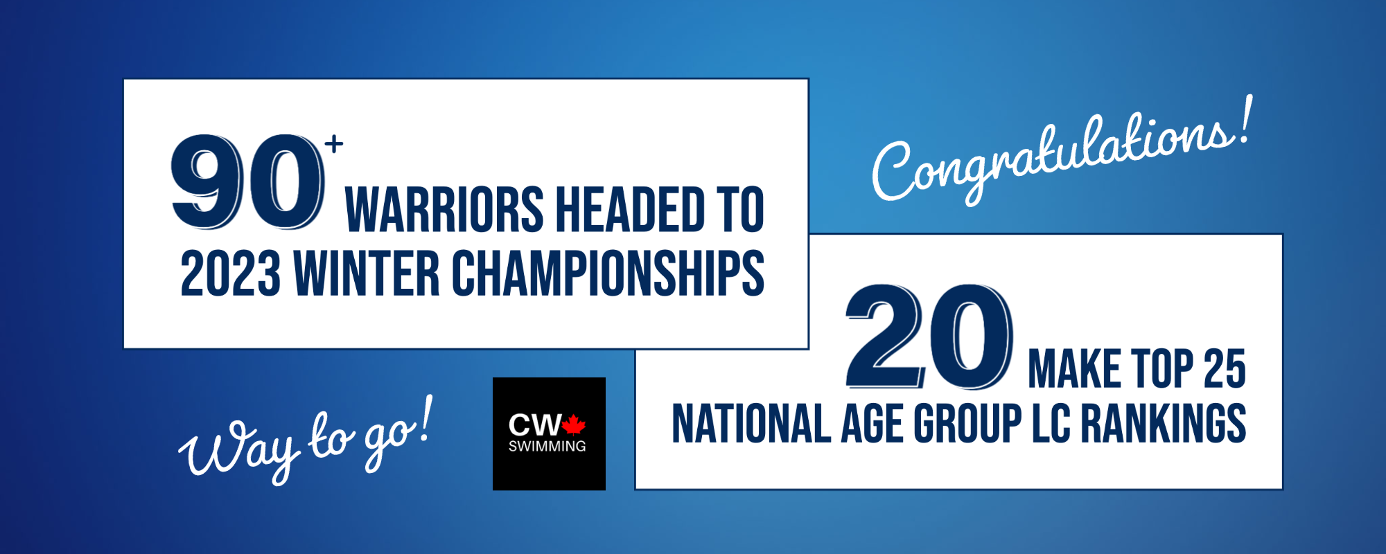Over the next 4 weeks, provinces around the country will be winding down their 2022-23 Winter Season, hosting championship style competitions for all levels. Here in Ontario, CW will be participating in our Regional Championships, Ontario's Winter Festival, Ontario's Youth and Junior, Ontario's Age Group Championships and Eastern Canadian Championships. During this time, CW will have over 90 qualified swimmers participating in the various meets. It is a very busy time for the staff but also a very exciting time for us. We will see the "pay out" for all of the hard work our swimmers have put in!