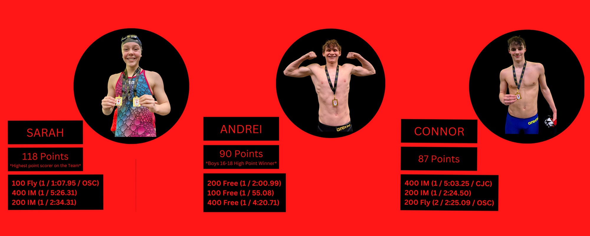 PBs – Mackenna Riel, Ethan Litschgy, Camilla Oviedo, Spencer Pirvu, Alan Salah