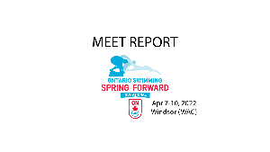 Ontario “Spring Forward” Championship Meet April 7-10, 2022 Written by: Head Coach Russ Franklin The weekend of April 7-10 saw a Team of 23 Club Warrior swimmers return to Windsor after competing there two weeks earlier. This time the CW group was competing in the Swim Ontario’s hosted “Spring Forward Meet” - To be eligible to compete in this meet a swimmer needed a minimum of one Ontario Youth/Junior or Festival qualifying time. There were two other similar meets held at the same time in other cities in Ontario. These...