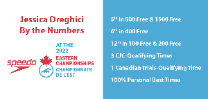 Fourteen-year-old Jessica Dreghici made Club Warriors proud at the 2022 Eastern Canadian Swimming Championships. This 4-day event took place from April 21st through April 24th in Pointe-Claire, QC and was the first Easterns held since 2019. Jessica competed in all the Freestyle events this year and set her sights on improving on or making the time standards as a 15-year-old for the summer Canadian Junior Championships (CJC), the highest level of competition for 18 and Under Canadians. Jessica kicked off Day 1 with a B-Final qualifying swim in the 200...