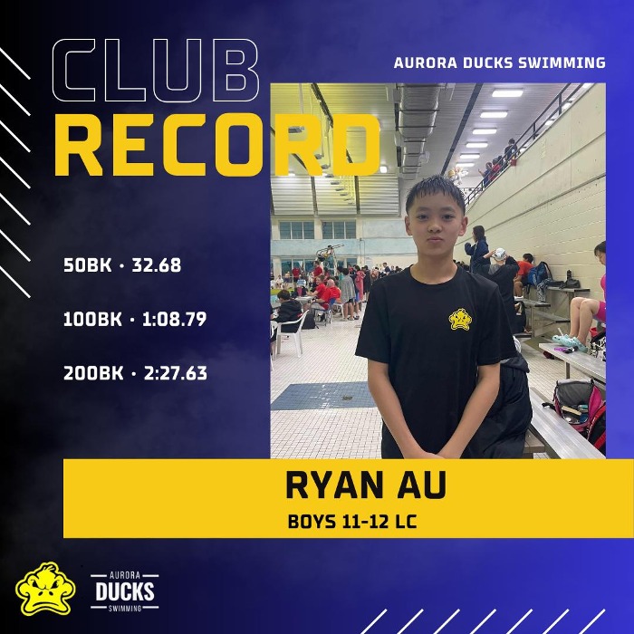 • 50m Backstroke – 2nd Place & Club Record
