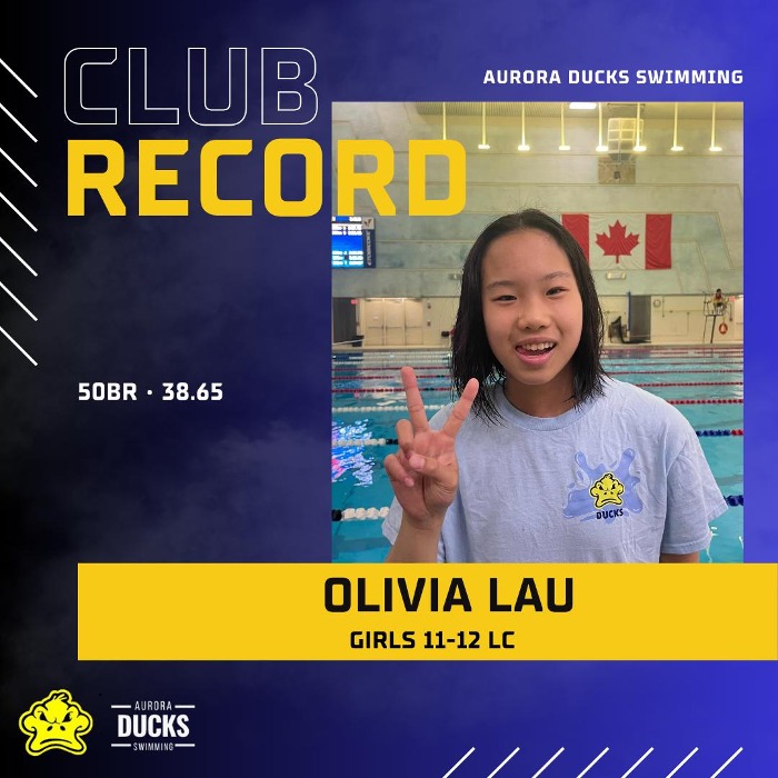 • 50m Breaststroke – 2nd Place & Club Record
