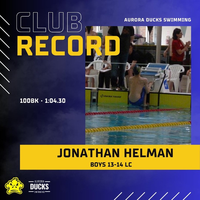 • 100m Backstroke – 2nd Place & Club Record