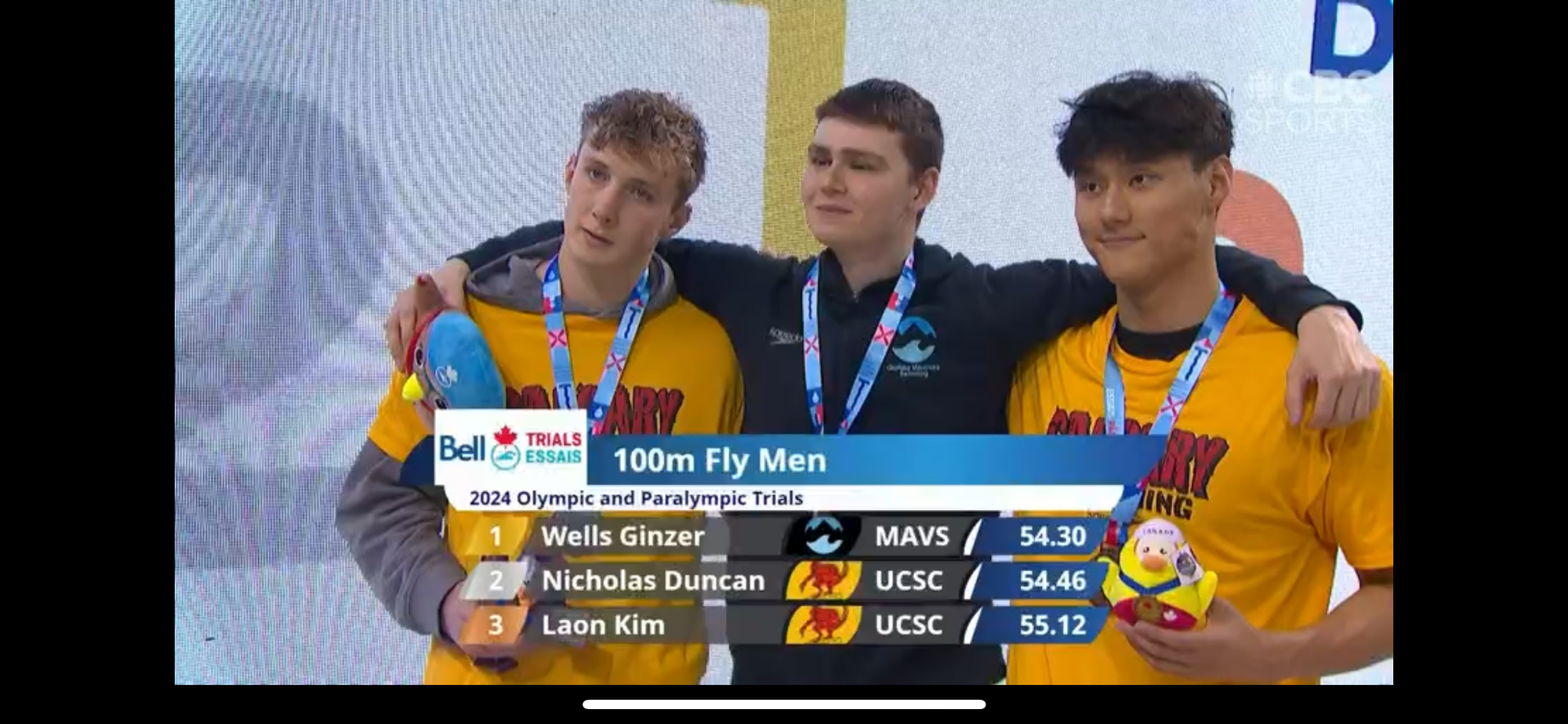 Alumni swimmers Finlay Knox (Maverick team member 2008 - 2019) and Justin Lisoway (Maveick team member 2006-2019) were also at the competition.