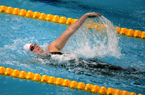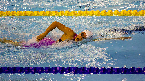 In FREESTYLE(pictured left) events, the competitor may swim any stroke. The stroke most commonly used is sometimes called the crawl, which is characterized by the alternate stroking of the arms over the surface of the water surface and an alternating (up-and-down) flutter kick. |