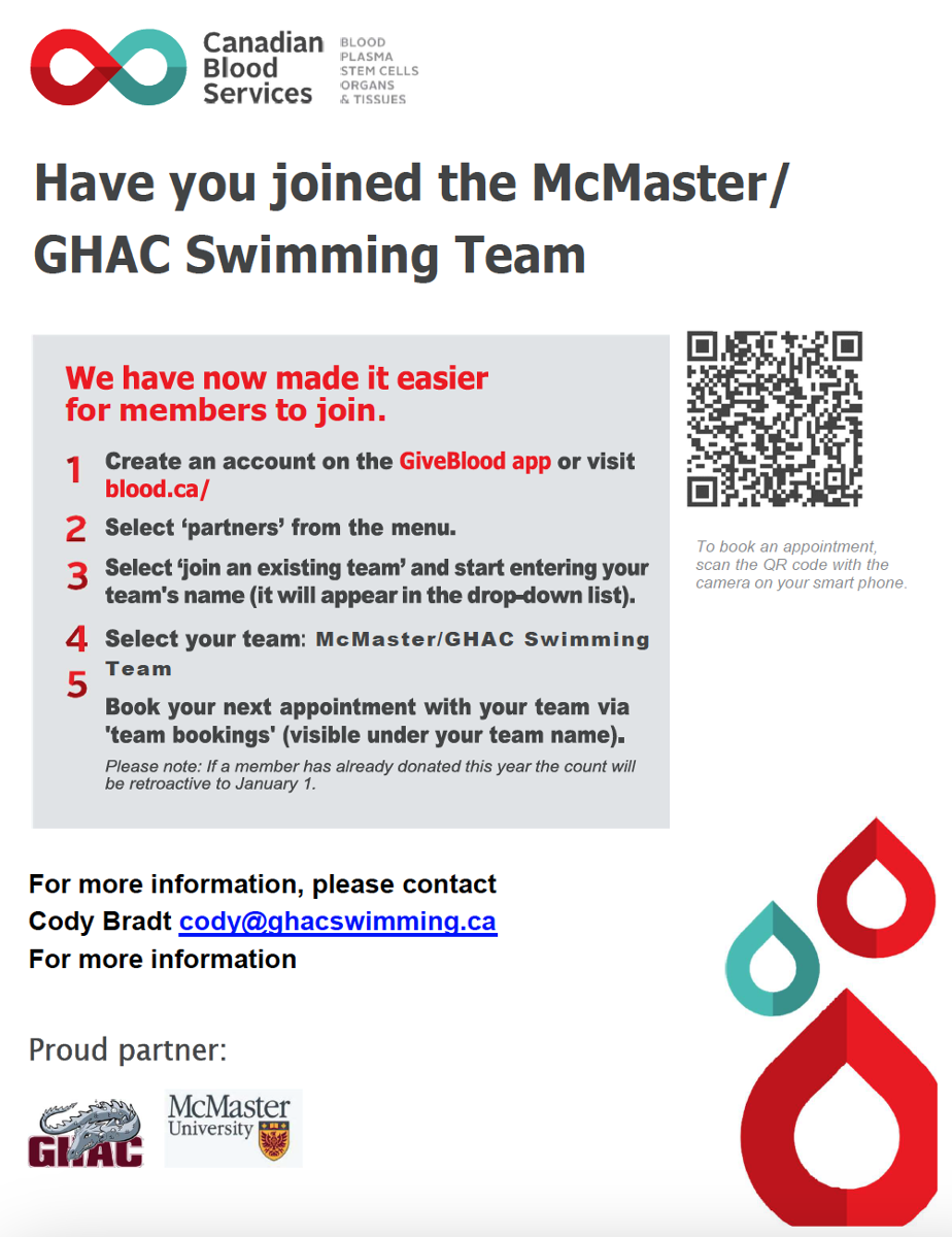 Join MAC/GHAC Swimming and Canadian Blood Services in their mission to save lives by visiting [https://myaccount.blood.ca/en/join-team/GOLD0114082](https://myaccount.blood.ca/en/join-team/GOLD0114082) today.