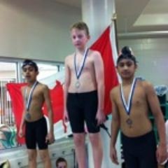Brodie, Tej, Sehaj 1,2, and 3 in the 100 breast, which means we swept both the 200 br and the 100 br; Brodie with a new AAA