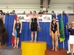 Zoe Froh scored bronze in 400 IM in a right race to the finish just ahead of teammates Sophia Brunoro and Jaime Lavoie.