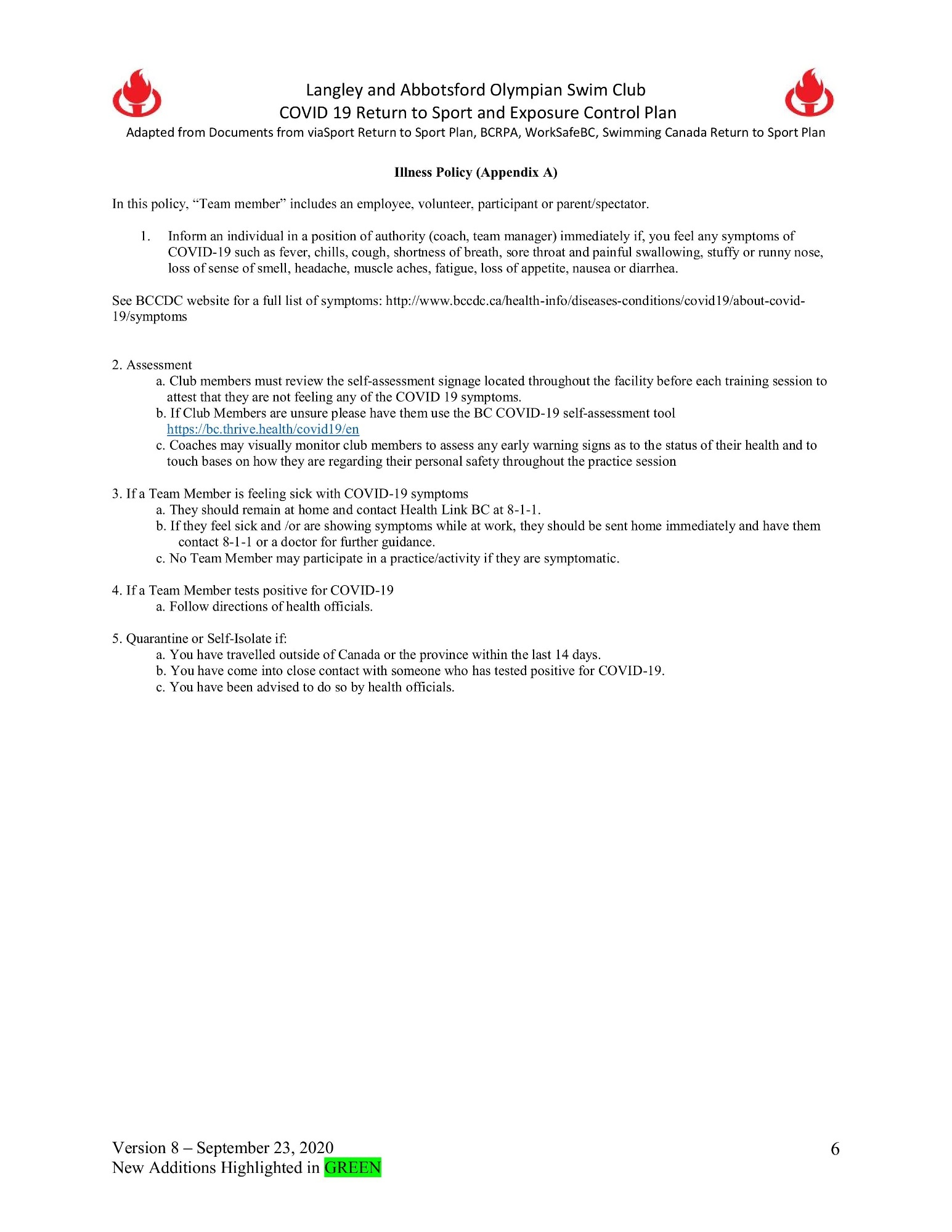 As a general reminder, Our Illness Policy (Return to Sport Plan, Page 6) that you have agreed to asks families to "Inform an individual in a position of authority (coach, team manager) immediately if, you feel any symptoms of COVID-19 such as fever, chills, cough, shortness of breath, sore throat and painful swallowing, stuffy or runny nose, loss of sense of smell, headache, muscle aches, fatigue, loss of appetite, nausea or diarrhea.” When informing, please email the symptoms you are experiencing as well.