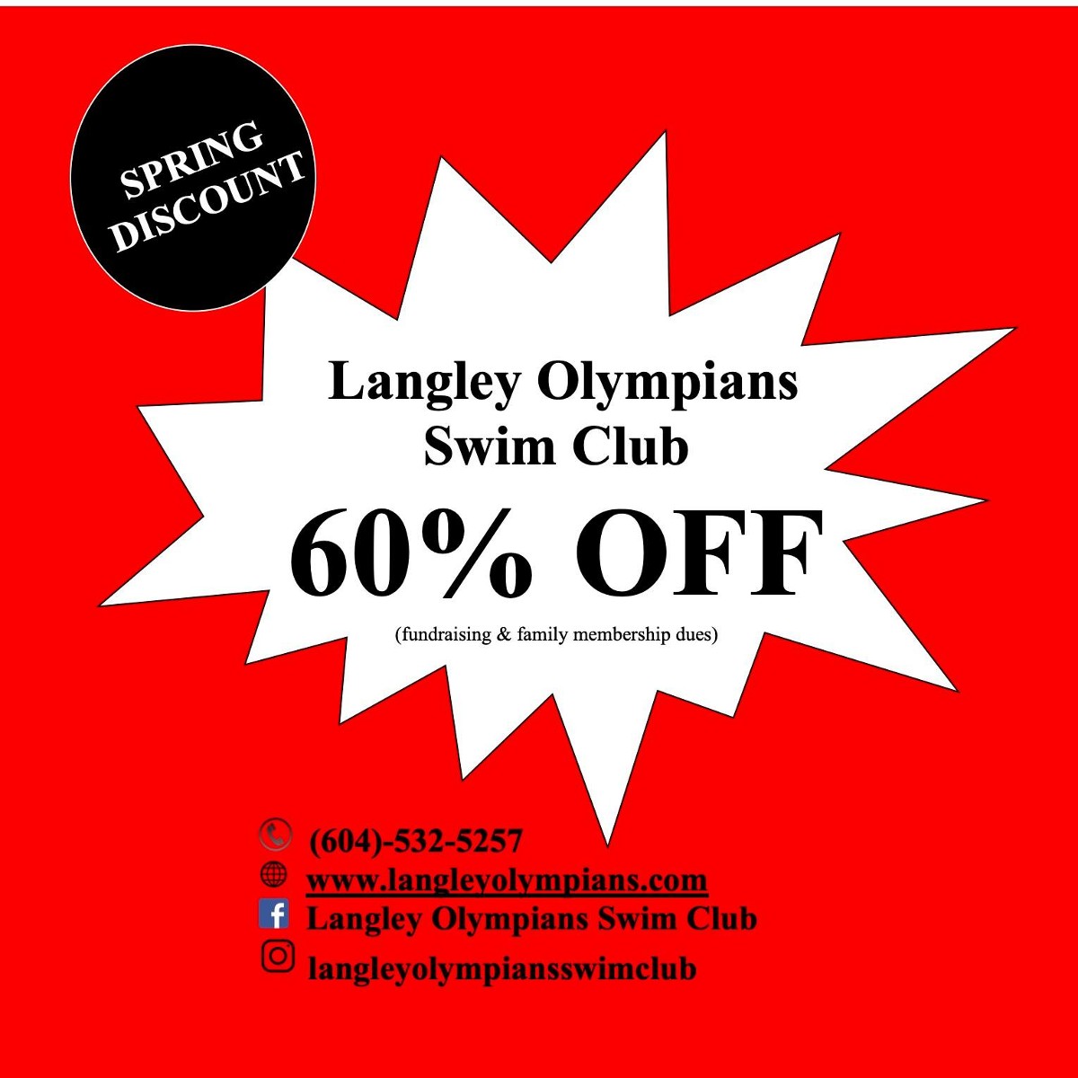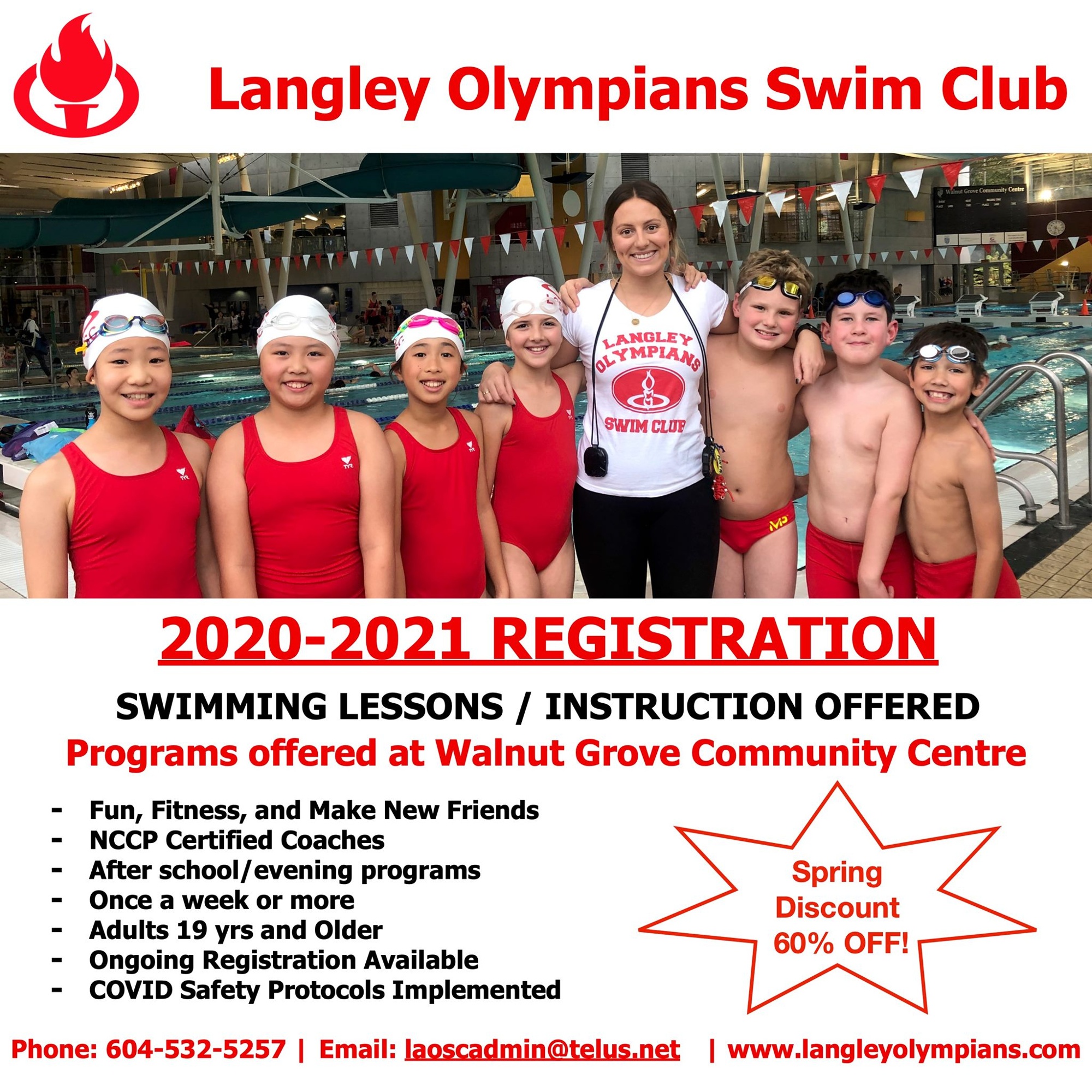 The Langley & Abbotsford Olympians Swim Club is accepting NEW members for the 2020-21 Season! We have COVID safety protocols. New members that join receive a 60% OFF Spring Discount for their family membership and fundraising fees!