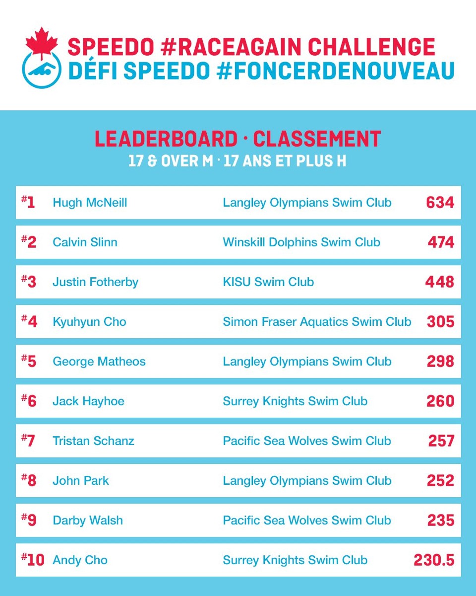 Swimming Canada #RaceAgain Challenge Stage 1 Results
