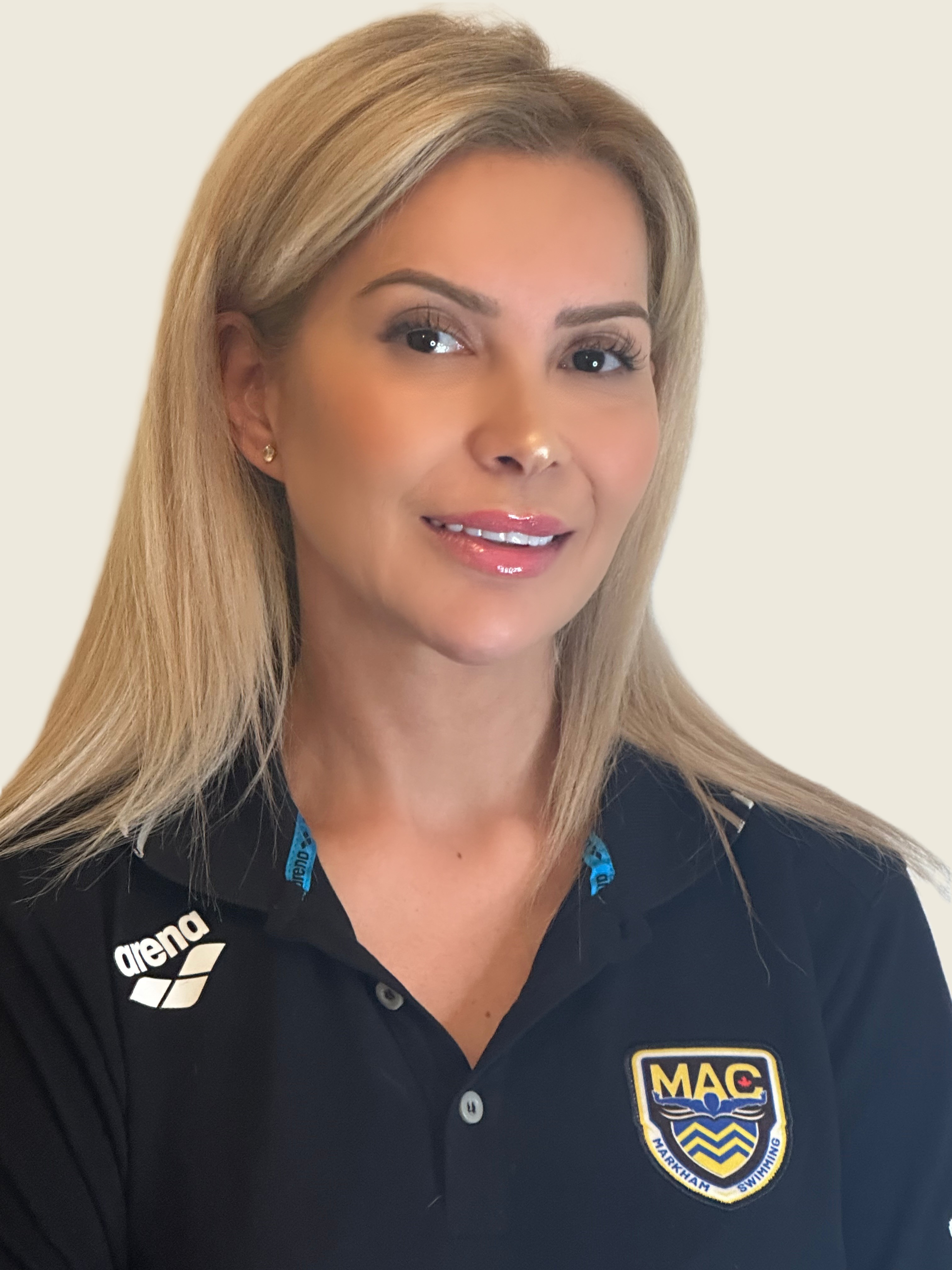 Coach Siham joined MAC in 2022. She has 18 years experience coaching from pre-competitive to competitive and senior age group swimmers. Siham coached nine years at RHAC, six as an assistant head coach. She contributed to producing 2 Canadian Olympic trials qualifiers (2020), 2 Ontario Junior International competitions (2021) and 1 gold medal at Eastern Champs (2022). Siham was herself a professional swimmer for 11 years. She holds degrees in science & education, business management and is working toward her EMBA in April 2023. Siham's enthusiasm, patience and technical knowledge combine with her extensive education, skills and experience to help create new beginnings for eager swimmers. Siham holds an NCCP Swimming level 3 trained, National Lifeguard Certified, and Standard First Aid with CPR-C.