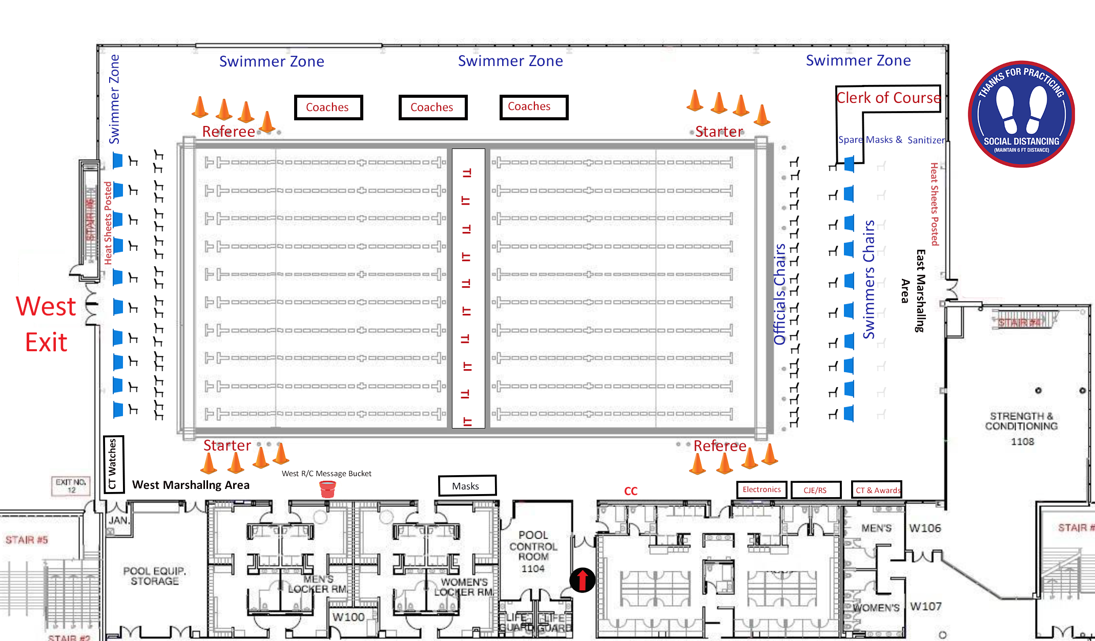 - Event organizers and Coaches from all attending clubs will support in directing traffic on the pool deck.