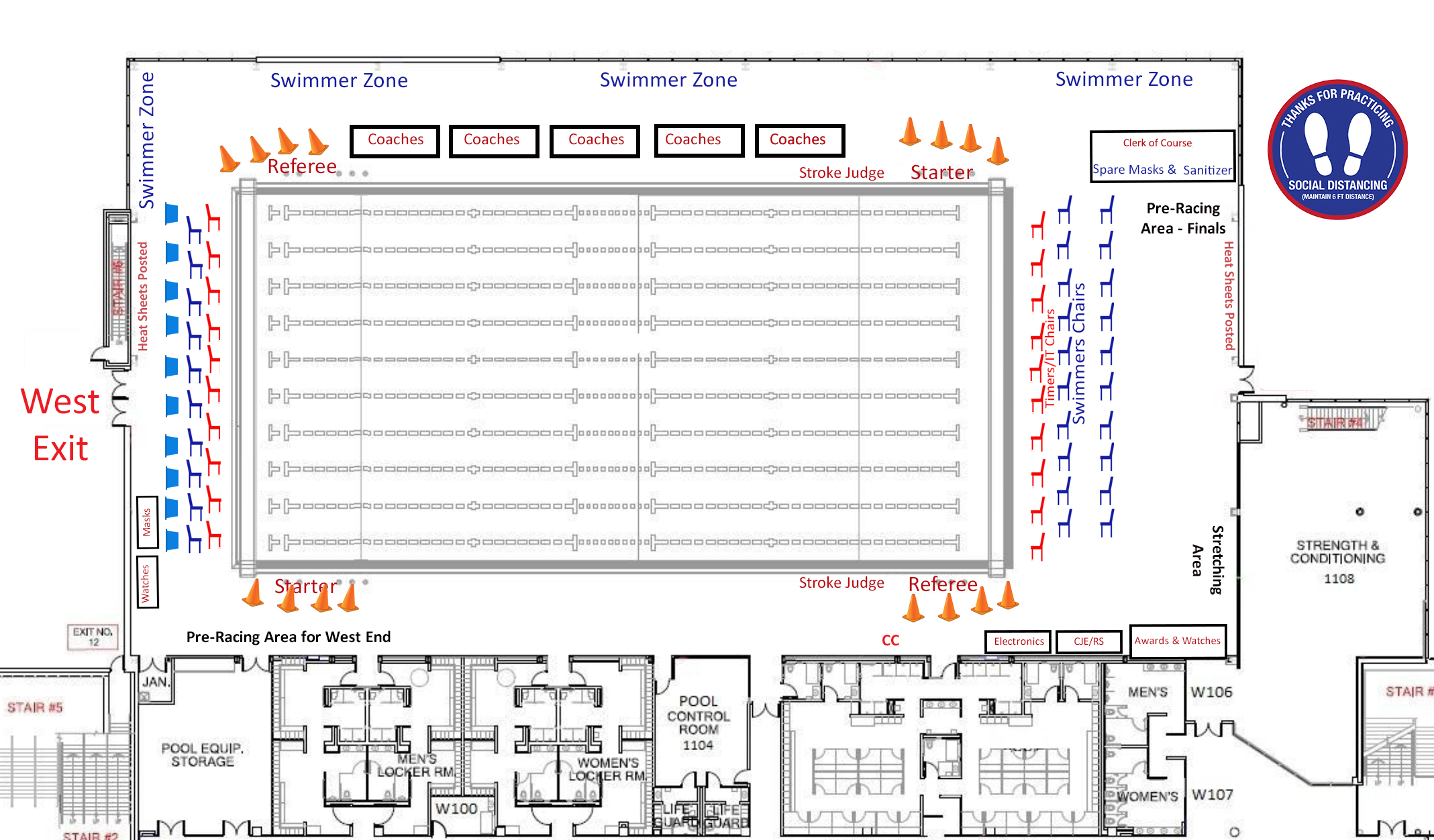 - Event organizers and Coaches from all attending clubs will support in directing traffic on the pool deck.
