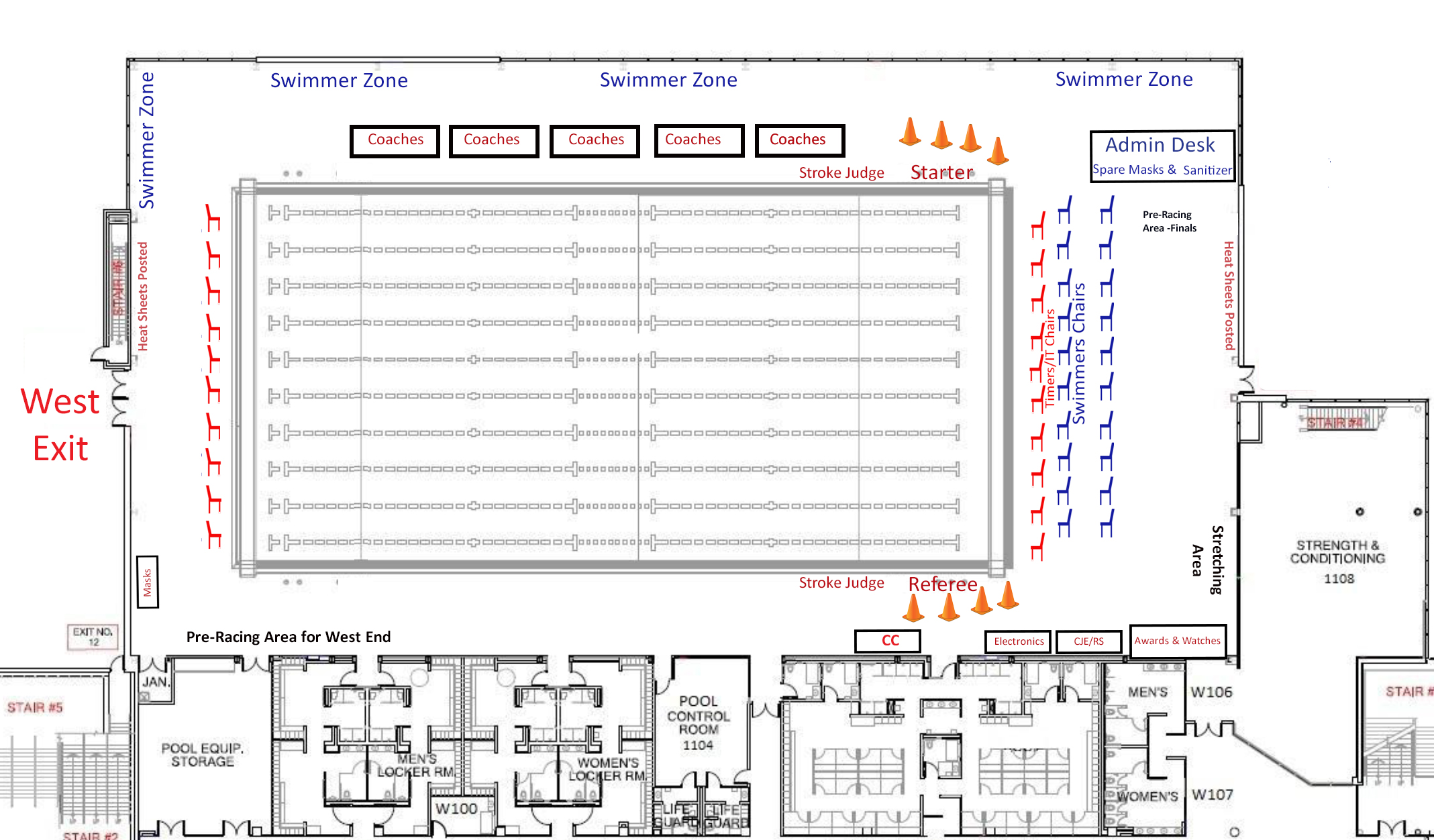- Event organizers and Coaches from all attending clubs will support in directing traffic on the pool deck.