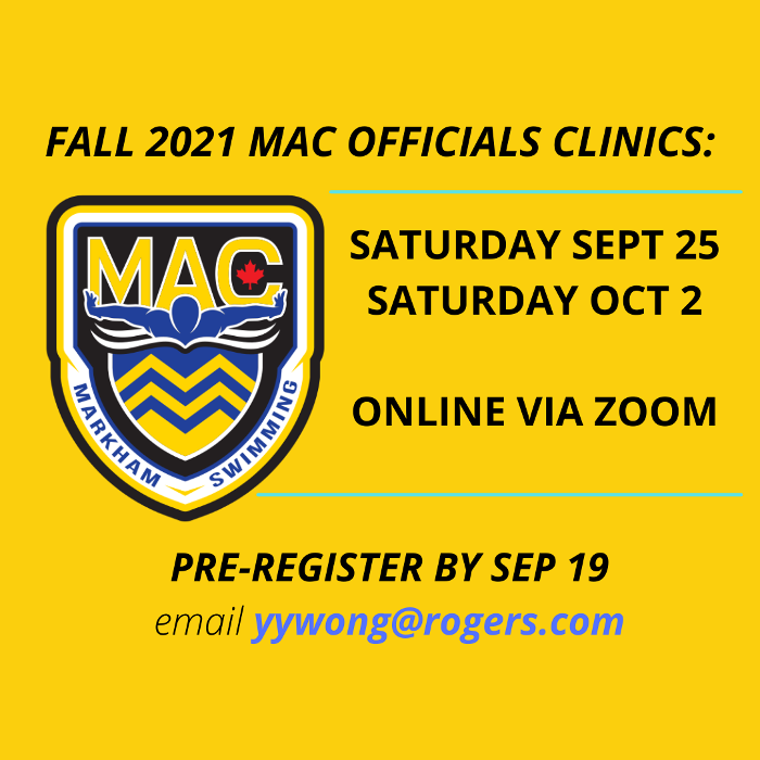 The chart below lists dates and times for Fall MAC officials training: Saturday September 25 and Saturday October 2, 2021. This year, training will take place online via Zoom. At least one member of each MAC family should pre-register for a Fall clinic. Pre-register by email to [email protected] before September 19 (Sunday) to reserve your spot.