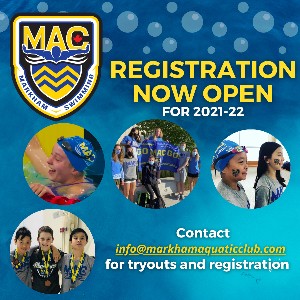 MAC today opened registration to new members for the 2021-2022 season. Tryouts are underway and the club is booking assessments for its pre-competitive Olympic Prospects program. Some spots are available in MAC's competitive age group programs as well. Demand is high and spots are filling quickly. Email [email protected] for assessments and registration details.