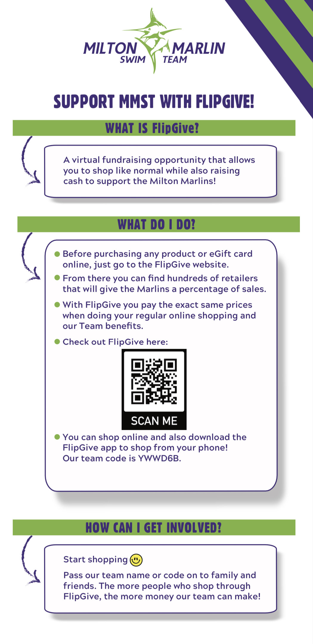The fundraising committee would like to introduce an initiative which will run continuously throughout the swim season and beyond - FlipGive! This is an online shopping portal similar to Ebates. Before purchasing any product or eGift card online please go to the FlipGive website first. From there you can find hundreds of retailers that will give back to the Marlins a percentage of sales. With FlipGive you pay the EXACT same prices when doing your regular online shopping AND the Team benefits. This is a great time of year to start this fundraiser as holiday shopping has begun! Please pass our team name or code on to family and friends. The more people who shop through FlipGive the more money our team can earn! FlipGive is also available as an app for those who shop on their phones. Please take a minute to sign up using the link below and enter our Team Code YWWD6B.