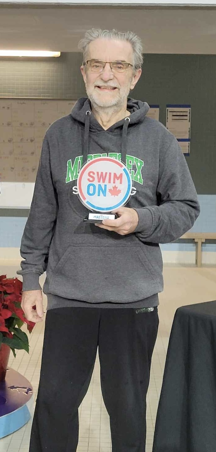 Also, congratulations are in order for David Spence for his performances at the Masters IM Fast Challenge which led to him winning the men's 75–79-year-old age category trophy for fastest accumulated race time total across the 50m Fly, Back, Breast, Free, and 100m I.M.