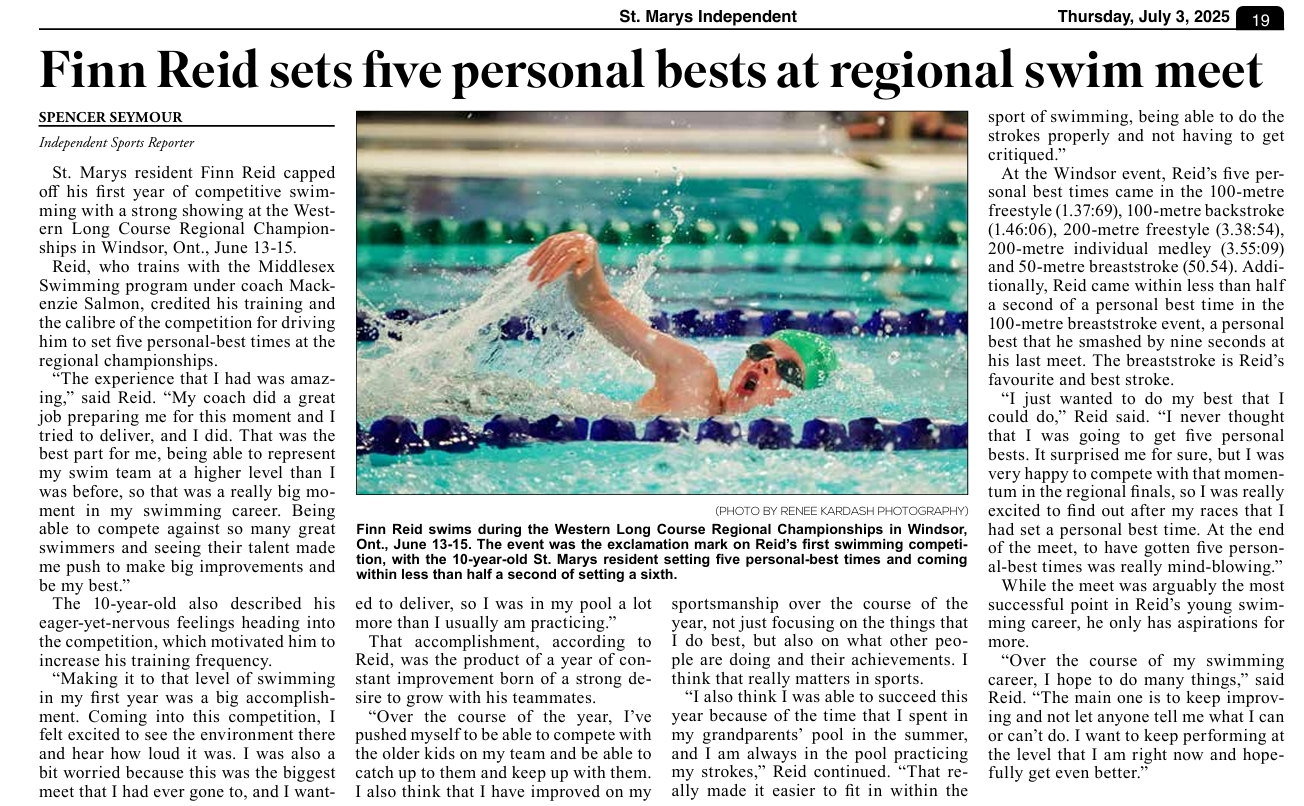 Finn Reid Is Making Big Waves - St. Mary's Independent Article July 3rd, 2025