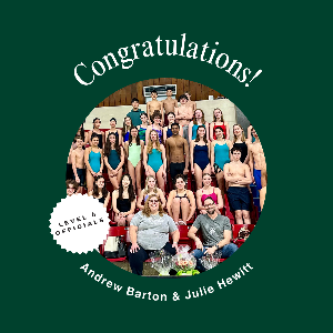 Andrew Barton, Julie Hewitt Earn Officials Level 4 Wednesday, February 7, 2024 Congratulations to Andrew Barton and Julie Hewitt on earning their Level 4 pin for officiating! Even if you don’t know them by name, we are certain you will recognize them from the pool. They have been a regular fixture at meets for years now in the Ottawa/Gatineau area, can regularly be found road tripping around the province to support our entire swimming community, and Julie’s even been known to set up an arts and crafts station at the...