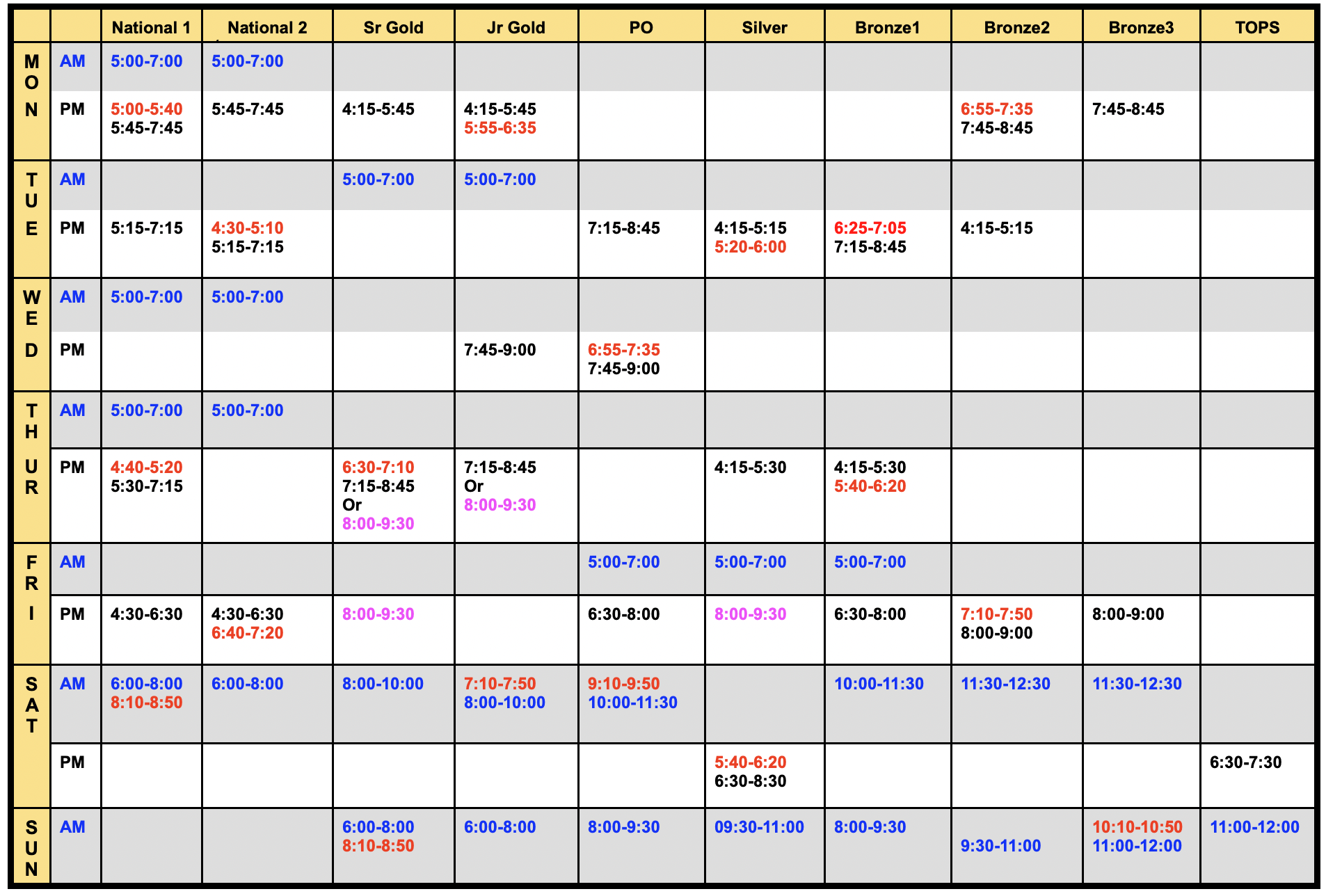 - Thursday October 2nd, 9th, 16th, 30th – 5:00am-7:00am – LC (Nat 1 and 2)