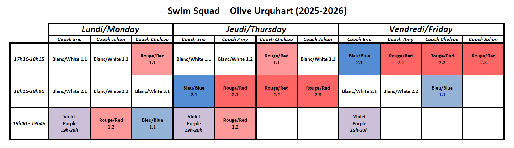 White/Red/Blue (2x per week) - Resident of Pointe-Claire: $216 Non-Resident of Pointe-Claire: $303