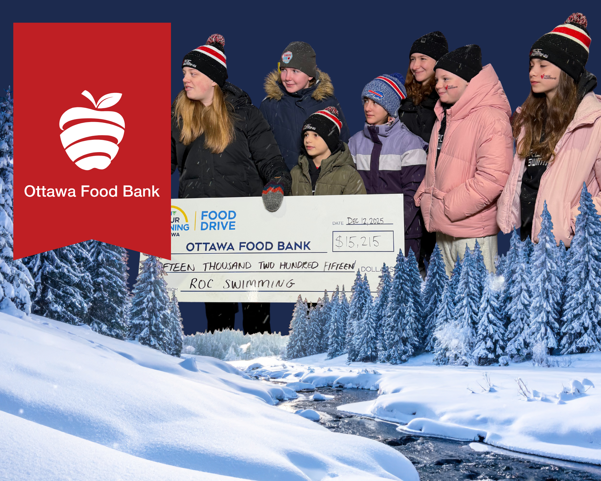 On November 29th, ROC Swimming age group swimmers came together in support of the Ottawa Food Bank’s holiday season fundraising efforts. Our swimmers, families, and supporters showed true community spirit in raising over 15,000$ for those in need.