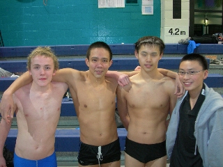 The Richmond Rapids Boys 13-14 relay team of Nathan Muszynski, Jack Hong, Bill Li, and Nicolaas Dekker, set a new provincial record in the 13-14 boys 4x200m free relay, posting a time of 8:12.68, breaking the previous record of 8:21.94, held by Island Swimming. Splits: Nathan Muszynski 2:04.52 Jack Hong 2:02.32 Bill Li 2:03.51 Nicolaas Dekker 2:02.33