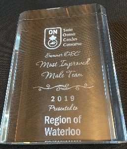 We are very pleased to share with our members a great accomplishment achieved by our team. R.O.W. Swim Club was recognized with the Most Improved Male Team award for its performance at this Summer’s Ontario Swim Championships (OSC) or Provincials. On September 13th, 2019, at Swim Ontario’s 30th Annual Awards Ceremony that took place in Mississauga, Matthew Berton and Alex Rus were very honored to accept this award on behalf of the team from Dean Boles! Heartfelt congratulations to the swimmers and their coach, Cathy!