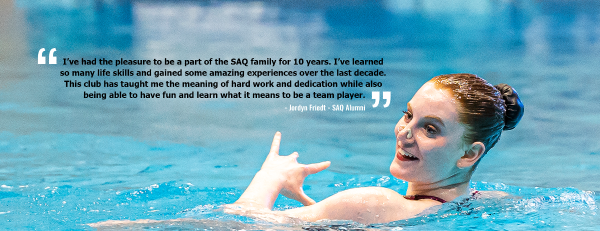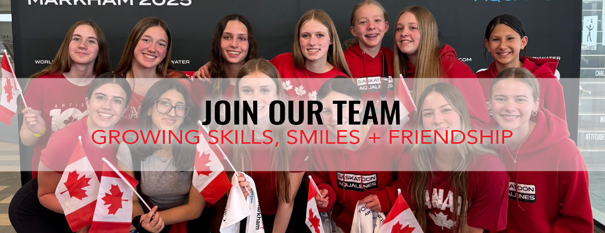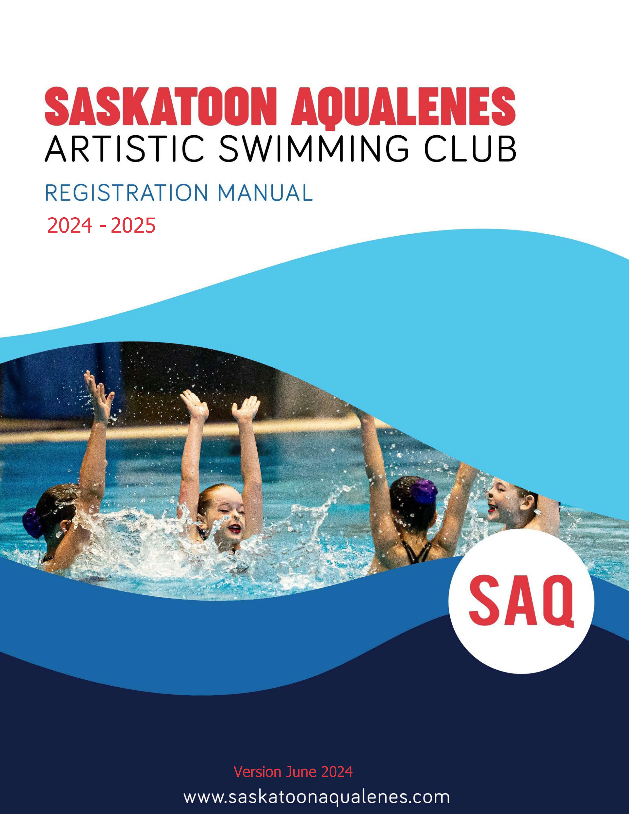 The Saskatoon Aqualenes (SAQ) offers artistic swimming programs (formerly called synchronized swimming) for recreational and competitive streams starting at age 5 up to age 21. Our mission is to develop the whole athlete through teamwork, excellence, fitness, and enjoyment. We are a non-profit club, run by its' elected Board of Directors which meets each month. All members are welcome at each meeting and are encouraged to be involved in team activities.