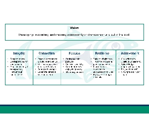 These visions, values and behaviours outline our team goal, the guideposts on the path to the goal, and the specific steps we take to getting there.