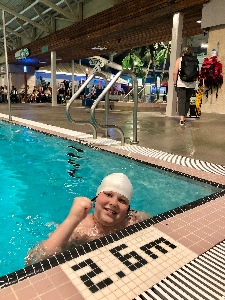 Today Brea won a gold medal in the 400 m Freestyle with a PB of 7:54.52, taking off -15.68 seconds. Ethan won a bronze medal in the 400 m Freesyle with a PB time of 8:45.05, shaving off 2 min and 20.29 seconds. In the 100 m Freestyle, Brea won a gold medal in a PB time of 1:48.96, shaving off -0.82 second and Ethan finished 4th with a PB time of 1:56.81, shaving off -18.84 seconds. Congratulations Brea and Ethan! Hera Serzane swam a PB time of 2:44.82 in...
