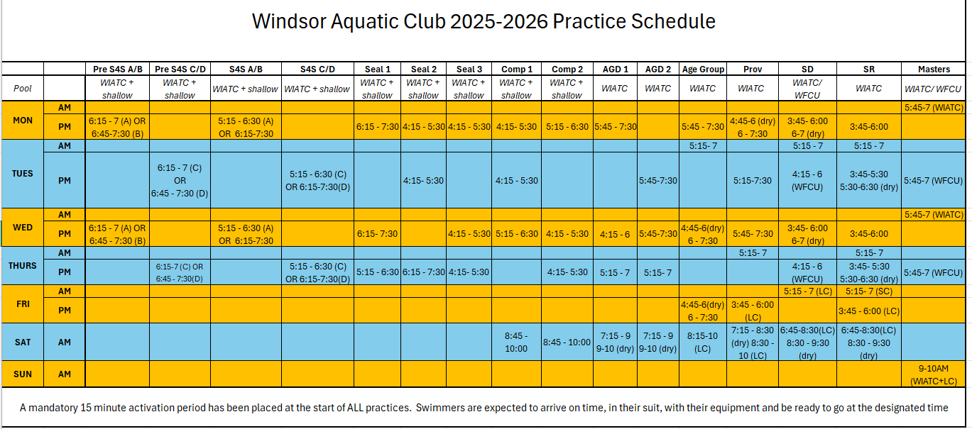 - ** All weekday AM practices for all groups (excluding Masters) will start Sep 30th.