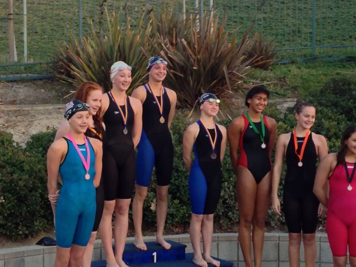 JULIA WOLF then took full advantage of the electricity in the air, and with a huge crowd and her entire team looking on, ripped off a 24.16 in the 50 FREESTYLE Championship Final to take the Gold and post the 2nd fastest time in Southern California this year!