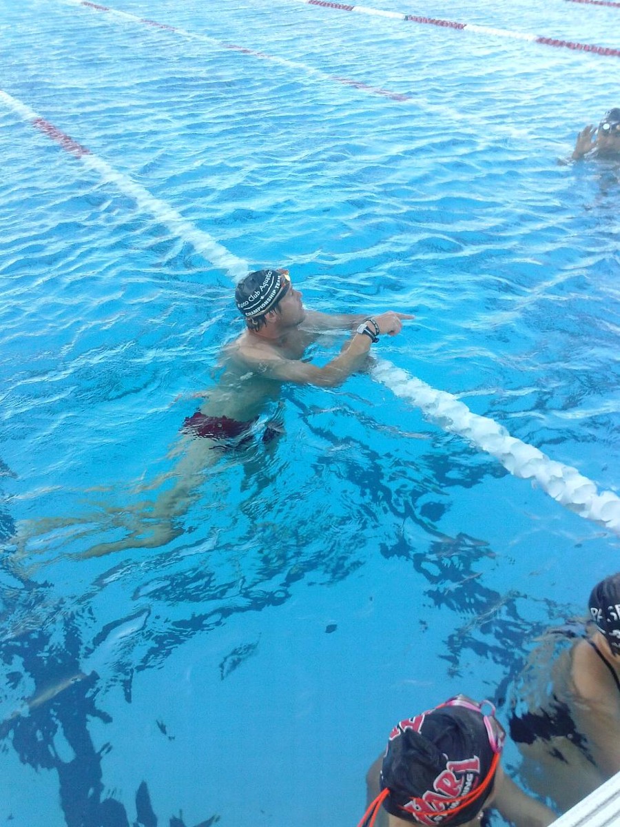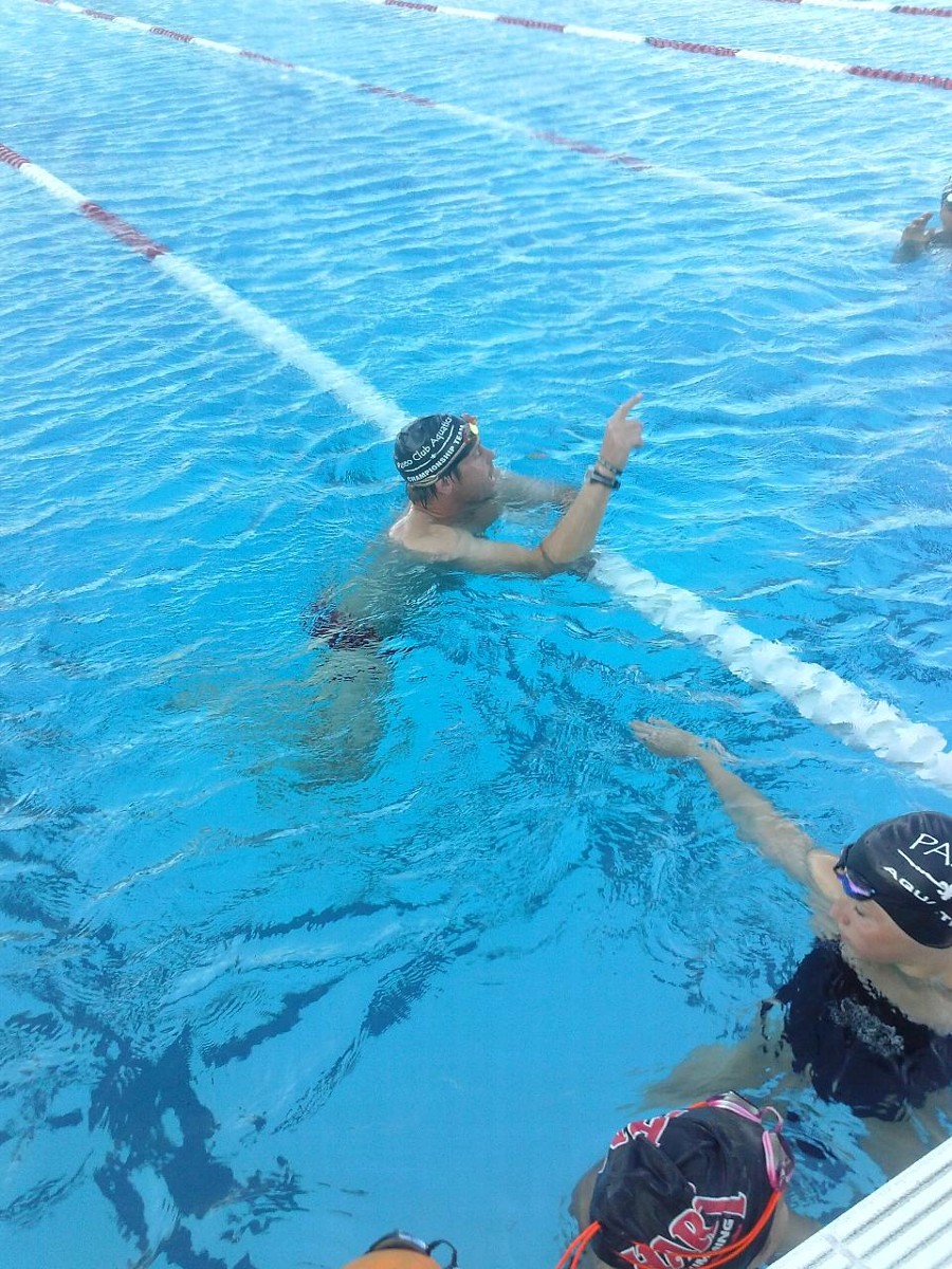 If you have ever been to a Coach Chris swim practice as a parent you would be very impressed with what you see and hear. Yesterday Chris took it to another level getting in the water with his swimmers to show you that he not only talks the talk but walks the walk as well.