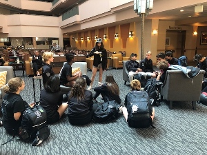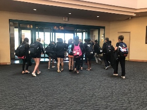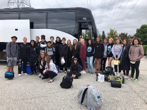 2. When the team travels to/from an out-of-area meet that involves a hotel stay. Coaches and swimmers ride in a chartered bus with chaperones.