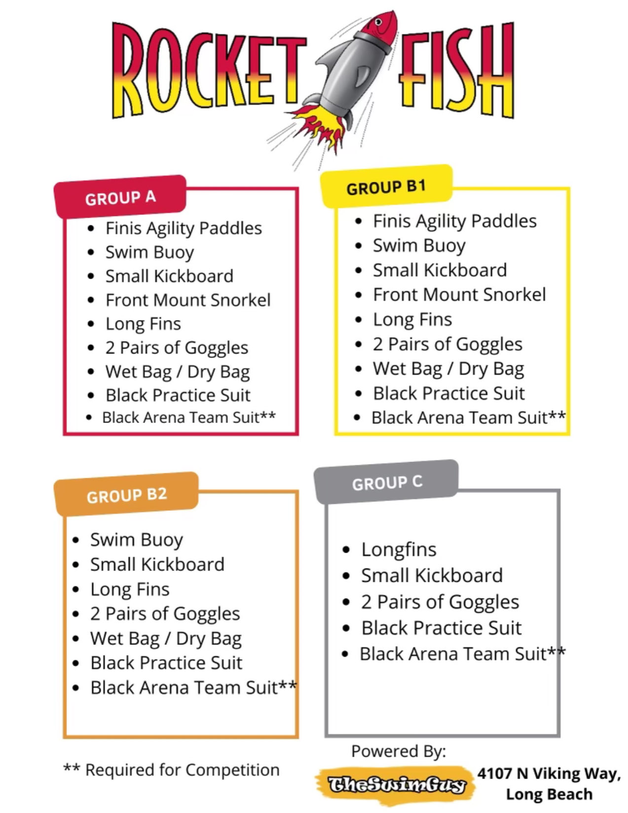 Team suits, required for all groups, can be purchased online or in person from: