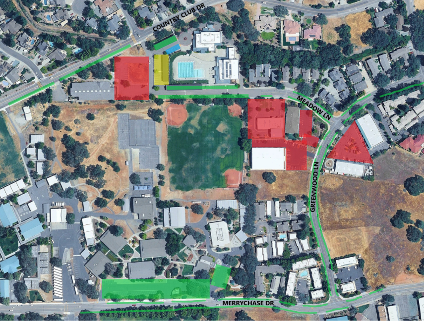 Street parking is allowed around the CSD, but please be sure to follow all street laws and be courteous to the neighbors in the nearby residential area. The areas indicated in green on the below map are good choices for parking. Cars parked illegally will be cited or towed.