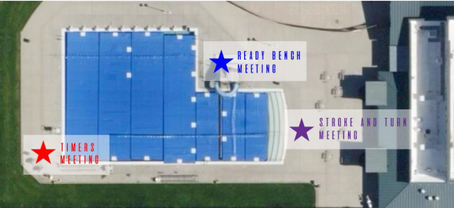 All Stroke and Turn judges will report to the northeast corner of the pool at 7:45 am for a Stroke and Turn meeting. This meeting is held to answer any questions, review lane assignments, and handout clipboards and DQ slips.