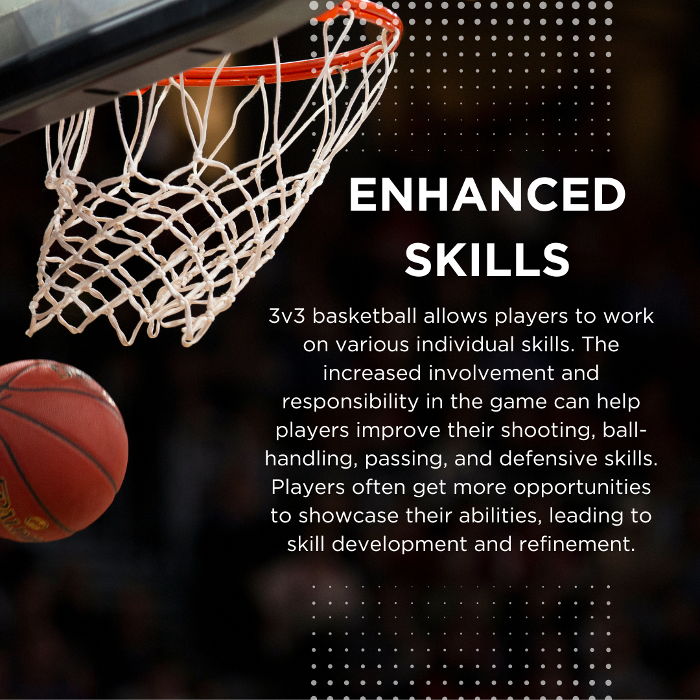 is hosting its first ever Fall 3v3 Basketball League. 3v3 play has been growing in popularity over the last few years. It is important for players to experience this type of playing environment to help take your game to the next level. Here are some benefits to 3v3 play: increased involvement, improved decision making, enhanced teamwork, and enhanced skills.