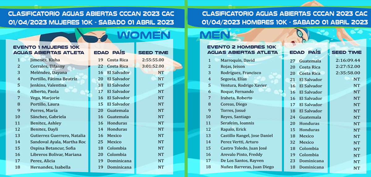 Psych Sheet AGUAS ABIERTAS JUEGOS CENTROÁMERICANOS