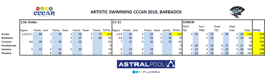 The Artistic Swimming Competition has concluded. The overall Age group Champion in each Category was Aruba winning 10 of the 11 gold medals awarded in the Championships.